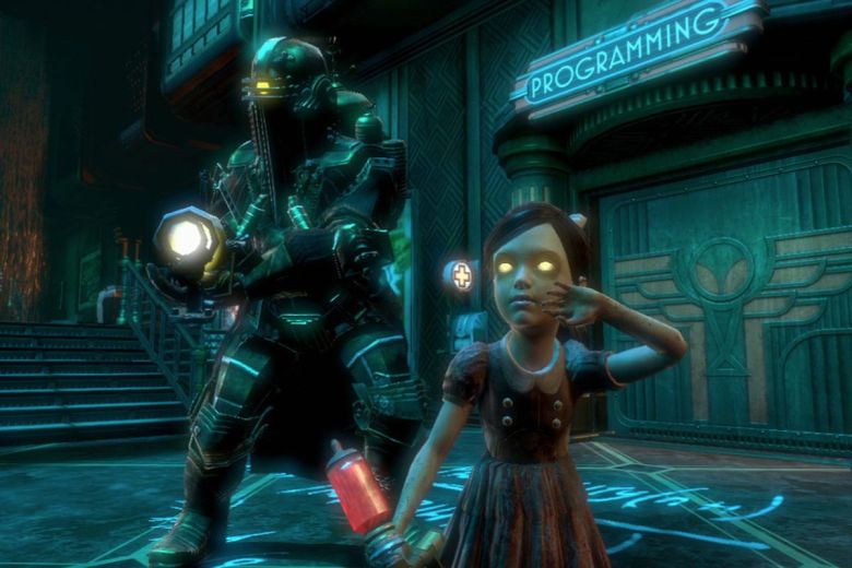 To get a full appreciation of the moment, I have to discuss its predecessor. Those that have played it know it to be one of the best games of this generation. Never mind that it’s now more than five years old. The underwater city of Rapture hosts a haunting journey of gunplay and plasmid fights, while also touching on subjects of Ayn Rand’s teachings and morality. Not your usual shooter tropes. Rapture is populated with many insane citizens known as Splicers, but also lumbering around are the Big Daddies and Little Sisters, the unofficial mascots of the BioShock franchise.
