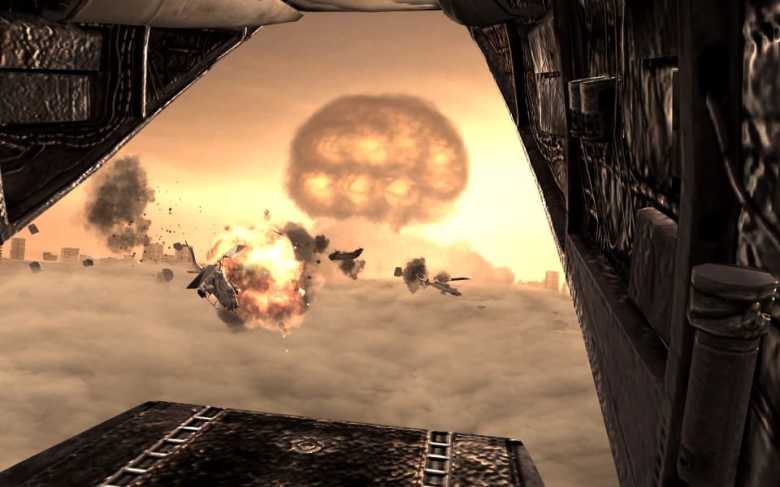 The second scene involves a nuclear explosion. In this mission you’re playing as Sergeant Paul Jackson with the American army. After an exciting level in a city located in the Middle East, you hop onto a helicopter and start flying away. It’s all done in real-time, and it’s evident that the production values are sky high. I could feel the heat and the sand on my fingers as I sprinted to apparent safety. Then, over the radio, a confirmation of a nuke has been identified and BOOM. It goes off.