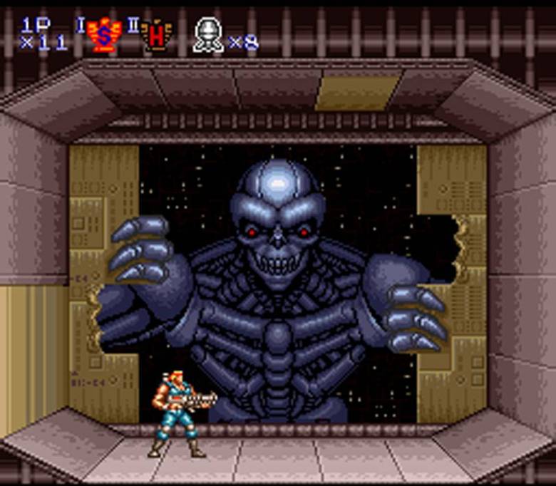 There isn’t much text in Contra 3: The Alien Wars but if there was any in-game lore, it would be as bombastically outrageous as the rest of it. It’s a leftover from the late 80s, warmed up nicely in the microwave. It’s a staggering jump in graphical fidelity from the classic Contra and Super C. The difference is immediately notable, it would have been extremely difficult for wary parents to pass by a display console and not have to explain to their children why they didn’t need a Super Nintendo, they already had a Nintendo at home.
