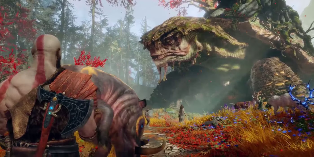 What really got to me though, and the game’s main hook, was the camera. It’s an ambitious choice, to say the least but essentially there are no cuts. The entire game is one long take. No obvious loading scenes, no cutting away to other characters, no title cards telling you the setting, no interruption of the action. It’s as if you’re literally standing behind the God of War the entire journey. You’re privy to even the most private conversations, and you’re thrust into the harshest conflicts right alongside him. God of War: Ragnarok showed that sometimes this camera style can hurt the narrative slightly, but here in God of War it’s so unbelievably fresh and sophisticated that I felt sorry for other games trying to follow suit. Being a few feet away from Kratos and Baldur’s initial fracas is like having a front row seat to a Super Saiyan brawl. It is absolutely brilliant.