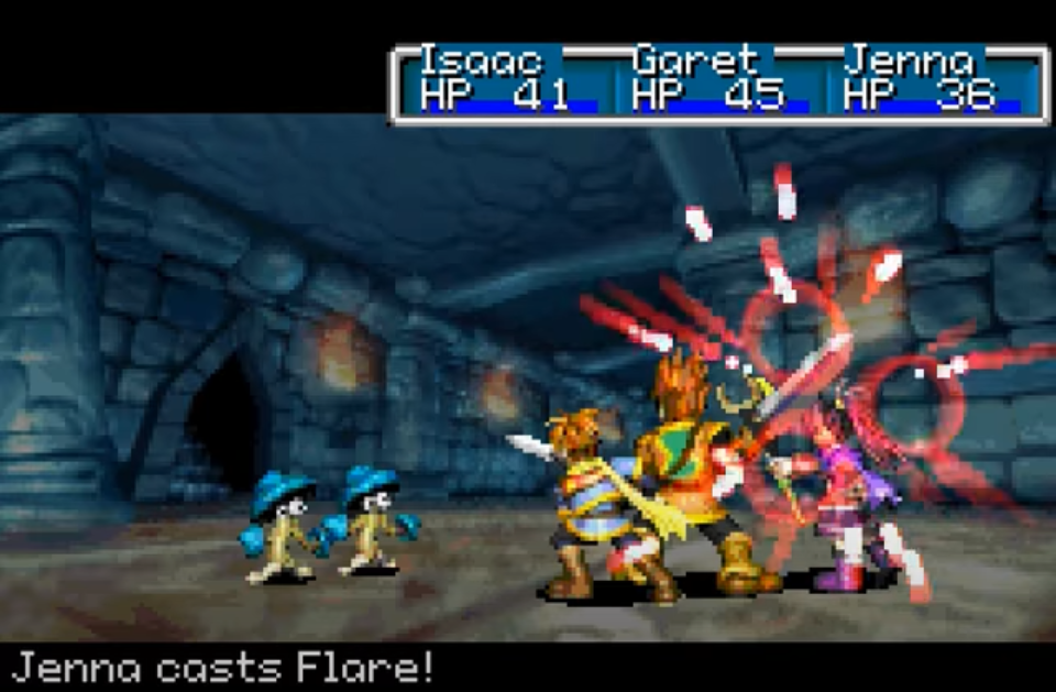 One of the best parts of the game are your magical abilities, brought to you by the Djinns. Collecting and swapping them meant giving certain abilities to certain characters. “Psynergy” became more than just magic spells in battle to give you a leg up – you could cast spells outside of combat and use them as tools to solve puzzles. It’s a wonderful touch. I mean, of course it makes sense the characters would use what they have to solve obstacles in front of them…and yet, in other games, it rarely does happen.