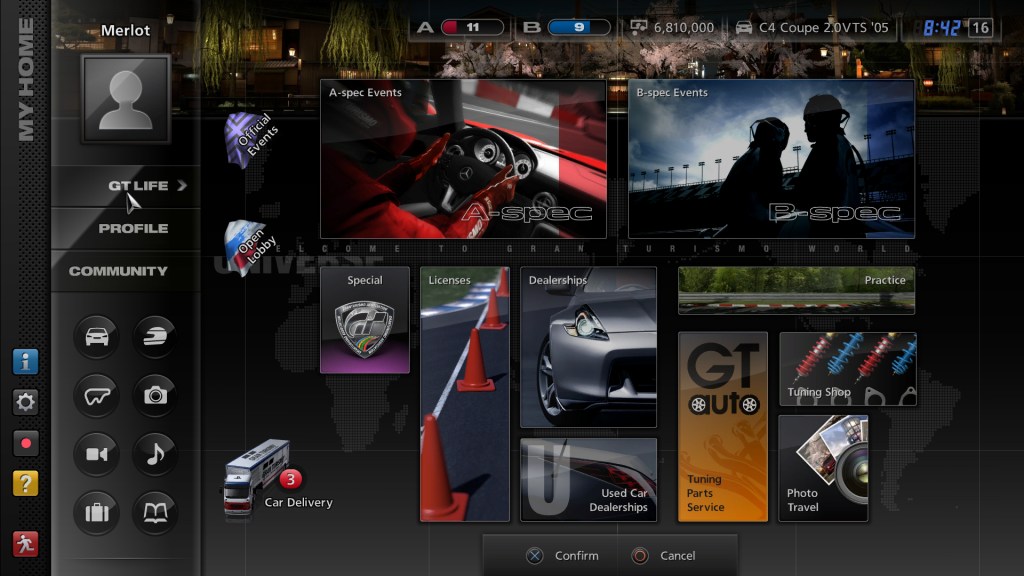 As somebody who has never played a Gran Turismo, I was instantly befuddled. Never mind that it took over a minute to get to the first screen, I had no clue how to get going. There was no “Grand Prix” choice. What the hell is A-Spec and how is it different from B-Spec? Are those difficulty levels? Super Mario Kart this was not. My head was spinning. What had I gotten into?