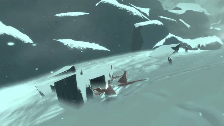 I’ll never forget a moment when we were trying to make our way through a snowy area. We were nearing the summit, my excitement was palpable. I was on the edge of my seat and I had to remind myself to blink. Foolishly, I fell off the landing and into the snowy depths below. Thankfully, you can’t really die in Journey so it was more of a time penalty than anything, but I was fearful of losing my companion. Over the last hour, I felt we’d formed a bond of trust. I didn’t want to lose them! I navigated my way back via a steep, circular pathway around a cliff, and got back to where I was.