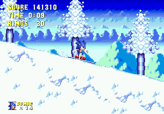 But the crowning jewel, the coup de grace, is Ice Cap Zone. You start this level by getting shot out of a cannon at the end of Carnival Night Zone and you’re immediately on a snowboard, cruising down slopes and listening to this absolute banger. It’s jazzy, it’s sweet, it’s hopeful, it’s sad. It’s terrific. There are 21 Ice Cap Zone Remixes alone on Ocremix.org , and for good reason. Because each act has its own musical theme, each new area feels interesting and slightly different than the previous one.