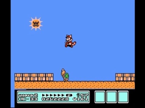 There’s the bastardly sun. The giant world. The ice world. The Tanooki suit, which gives you raccoon powers AND you get to transform into a statue. Shells of all kind, secrets galore. Jeff Gerstmann and Dan Ryckert playing it on a roller coaster. Warp zones. Auto-scrolling levels. The airships. The koopalings.
