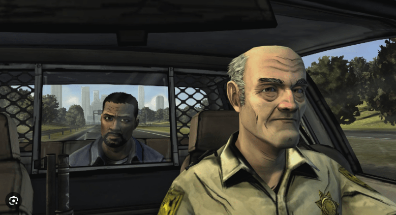 The game takes place in the same universe as the popular comic books and television series. There are a few crossovers. The graphical style is appropriate, as it looks like a living, breathing graphic novel. This is not a boring choice; each person’s features are elaborate enough to make them stand out and feel real, but not so much that they look goofy and cartoonish (Larry aside). You play as Lee Everett, a man convicted of killing a man who was having an affair with your wife. The game begins in the backseat of a police cruiser. I wouldn’t dream of telling you what happens next.