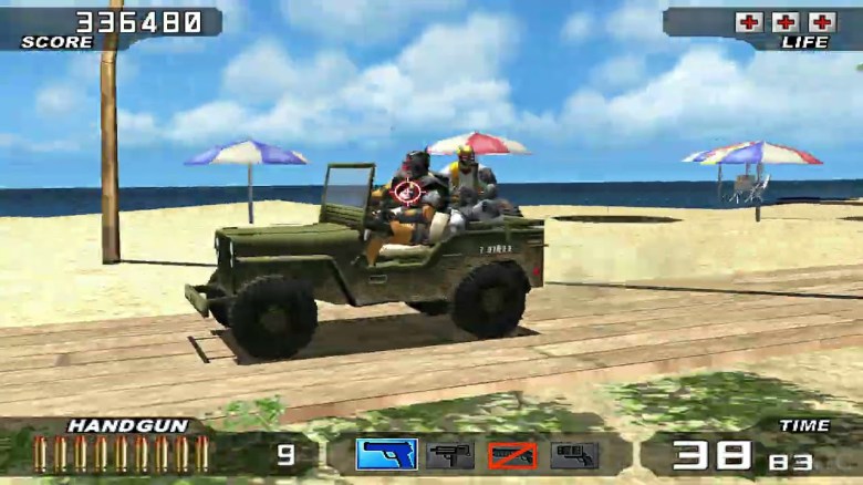 Which is good, because the plot, dialogue and everything that doesn’t involve the core shooting is ridiculous. Time Crisis 4 is even funnier in this regard. We played it, but not to completion. I recall the enemy was a bunch of terrorists using TERROR BITES, some kind of insect robot swarm being deployed for nefarious reasons. I also just learned there is a Time Crisis 5 and plans for a 6th. I gotta get myself to an Arcade, stat!