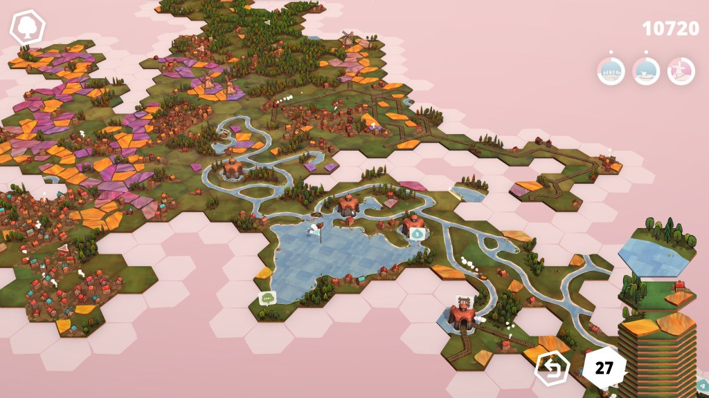 I’ve read that this counts as a city-building puzzle game, but it’s about as friendly a puzzle game as I’ve ever played. I’d certainly be motivated to beat my high score and there’s a slight annoyance when I can’t build my lake exactly the way I want it, but those are nitpicks and never diminished my enjoyment of Dorfromantik. I can’t recommend it enough for anybody who is a fan of board games, or city building sims or if you just need to feel at peace.