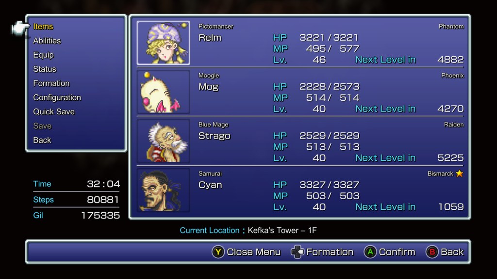What a boring diatribe. Let’s get to the actual game. Final Fantasy 6: Pixel Remaster.