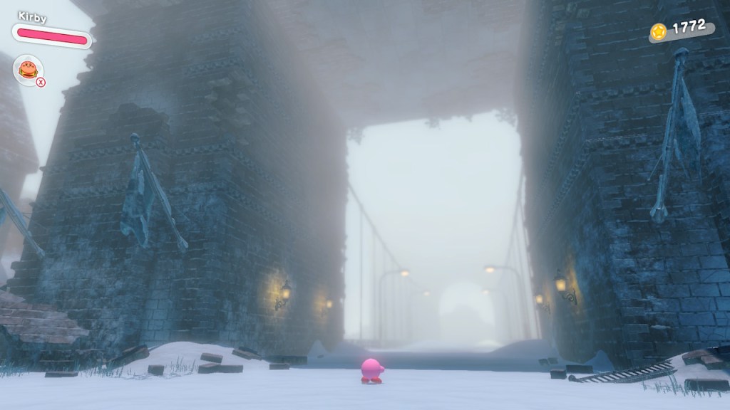 Luckily, nearly every power is fun to use. Mouthful Mode is always funny, every single time. I never thought I’d be excited about turning into a giant traffic cone, but here we are! Boss fights were a legitimate challenge. The hub town inhabited by Waddle-Dees was a welcomed respite from the rest of the action. The Treasure Road challenges provided a spike in difficulty for when I was feeling saucy.