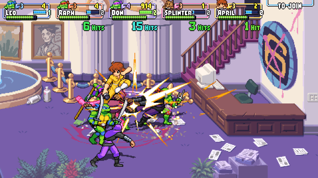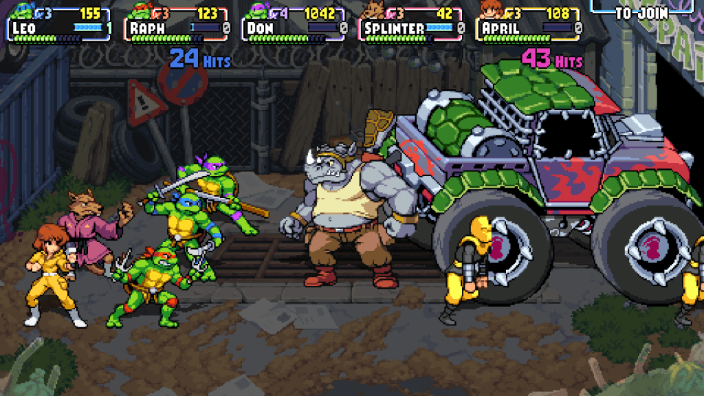Has there ever been a more aptly named developer? Tribute Games understood everything about what fans wanted to see in a new Turtles game. There’s the trademark goofiness and jokes. The animation is smooth as butter. The art style is stunning. This is what we think we remember seeing in the original arcade games. They got the spirit of the franchise and updated it with fantastic modern additions. Adding in Splinter and April O’Neil was long overdue and seems so obvious in hindsight. Boss fights are a frantic, fun mess. Secrets are everywhere. Homages litter every corner for hardcore fans. The background detail on the levels forces you to focus on the task at hand – little touches like the Foot Clan working random jobs so they can ambush you elicited frequent chuckles out of me.