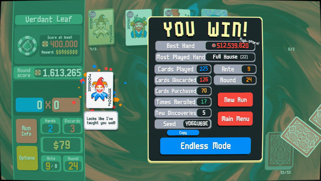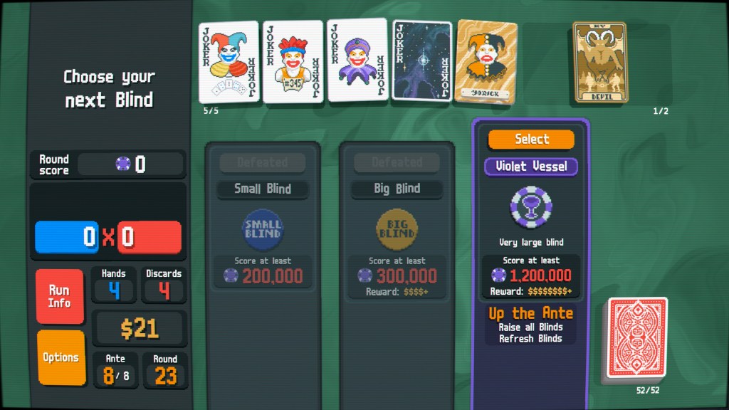 I may not be able to create a Flush House or a Five of a Kind at the casino without cheating heavily, but I can do so in Balatro and be heavily rewarded for it.