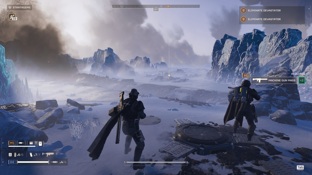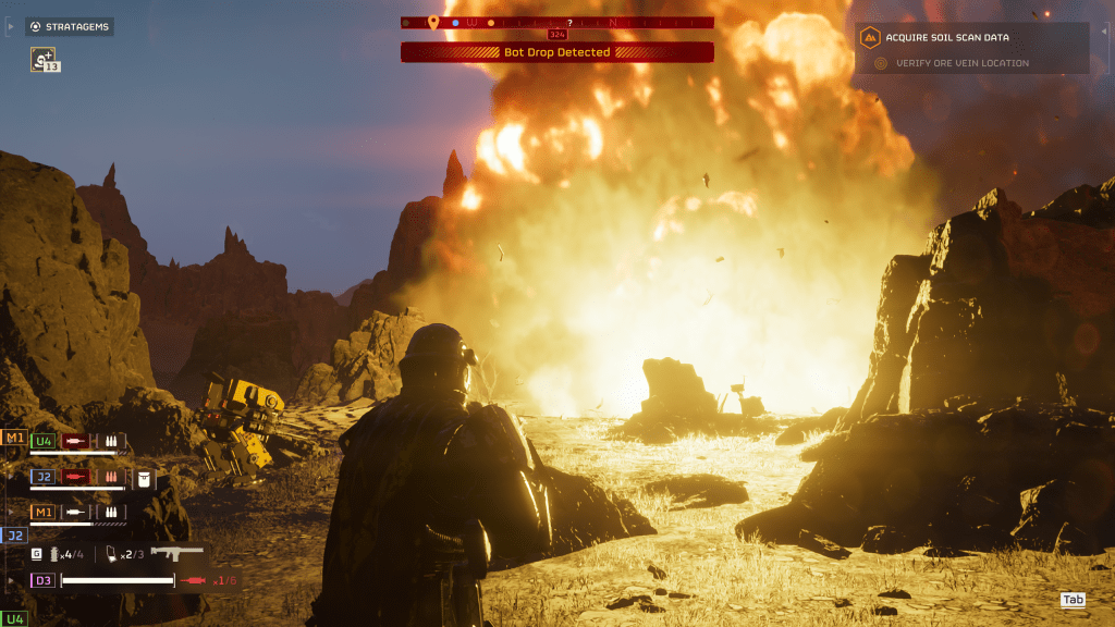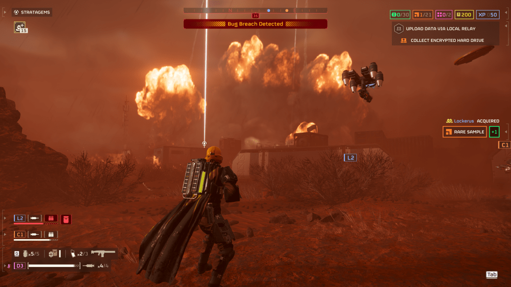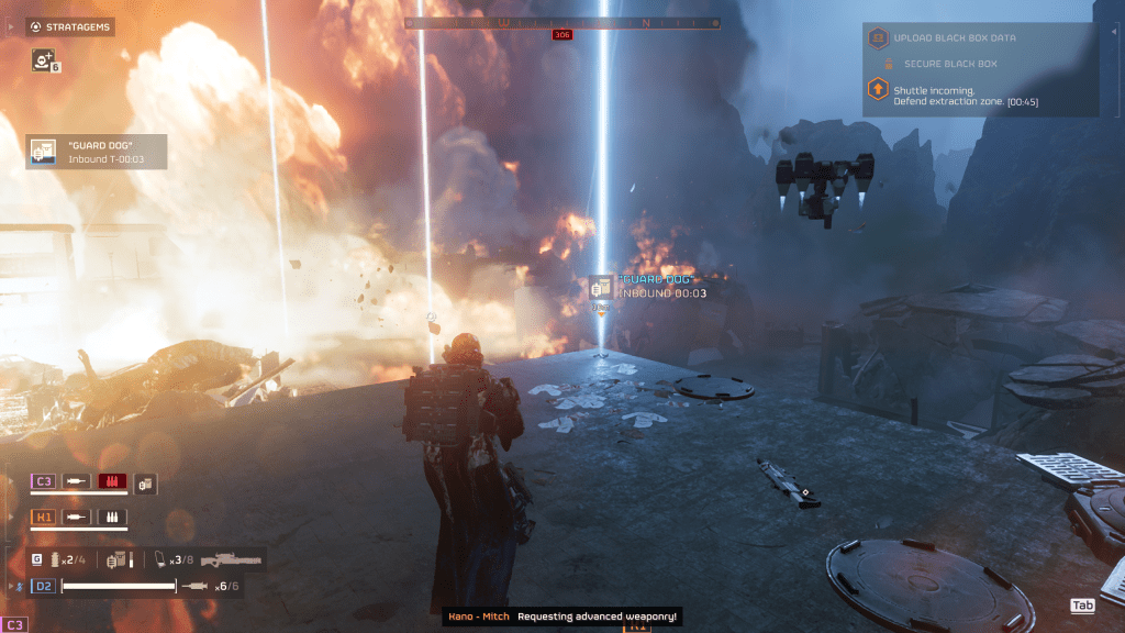 It may wear its inspirations on its sleeve, but with a game like Helldivers 2 it springs to mind why did it take so long to make something like this? The netcode is incredibly well designed and joining up with a group is as easy a process as it should be. We all like shooting aliens with our friends, so what makes Helldivers 2 the surprise hit of the year? Is it as simple as the call downs? Probably the best in-mechanic mini-game since the active reload, pressing various buttons in a sequential order to bring down impossibly devastating aerial strikes or much needed equipment is thrilling. Doubly so when you’re swarmed by monsters, robots and aliens and you’re low on ammo and where the hell is the drop ship and oh my Democracy, I just died can somebody revive me?