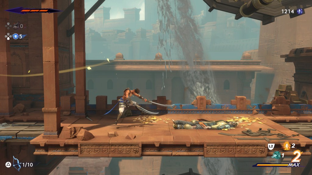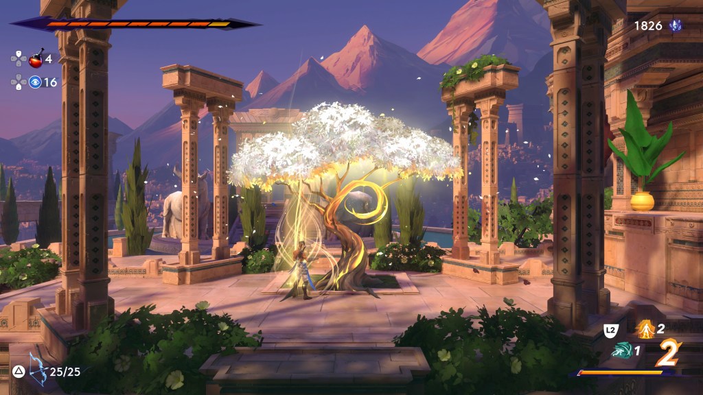 If there’s one mechanic a Metroidvania needs to get right is traversal. If you’re going to ask a player to backtrack into previously explored locations, you better make it easier and quicker to do so than the initial foray and thankfully The Lost Crown nailed that aspect. Platforming around even the most devious traps feels doable thanks to the tight controls and a handy map. The “picture” mode is immensely useful, one I’d like to see others adopt – I can’t tell you how many times I unlock something and remember that “a” place required that upgrade to progress, but not “which” place and this solves that. Wonderful.